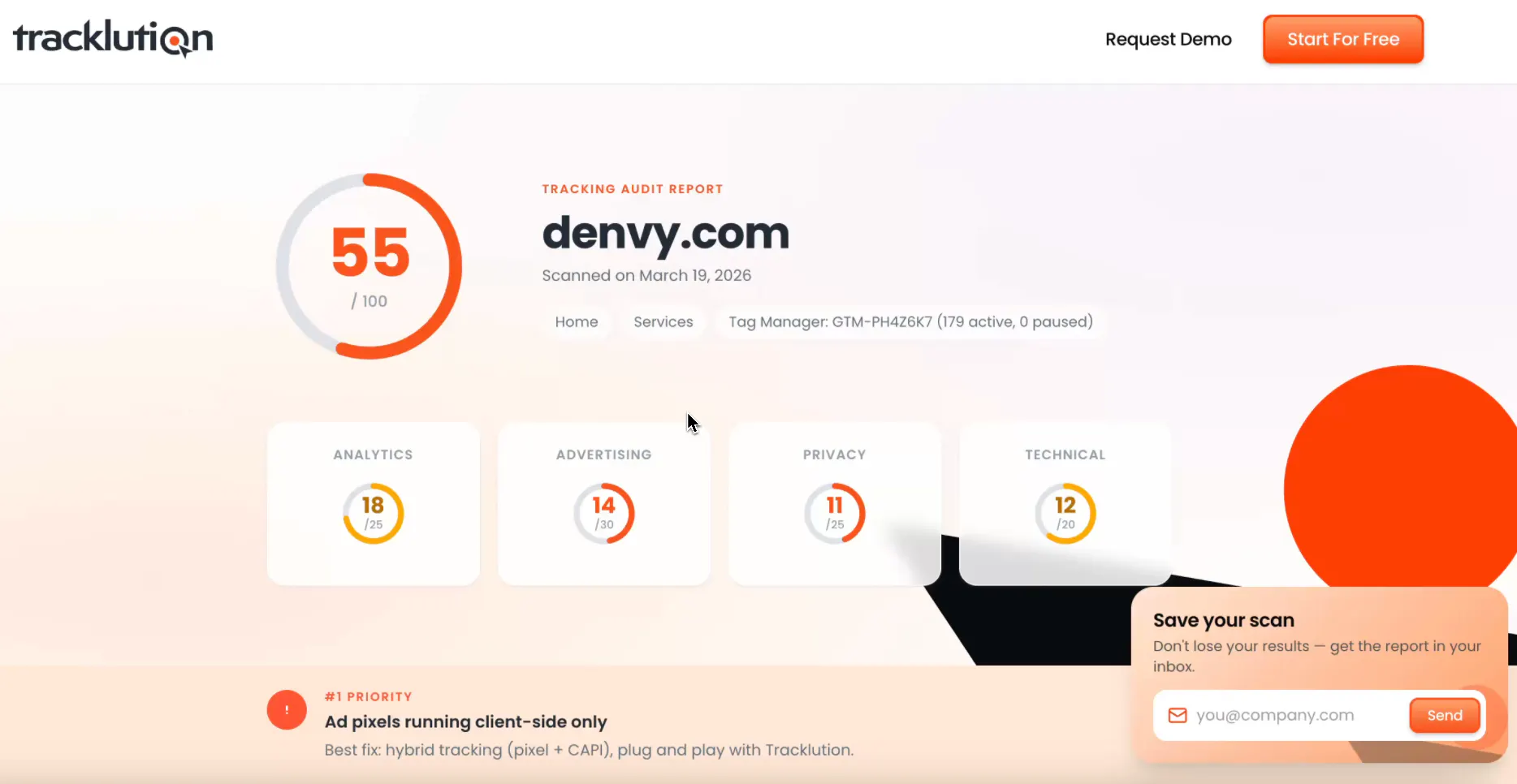 Drop in any URL and scan your tracking setup in minutes.